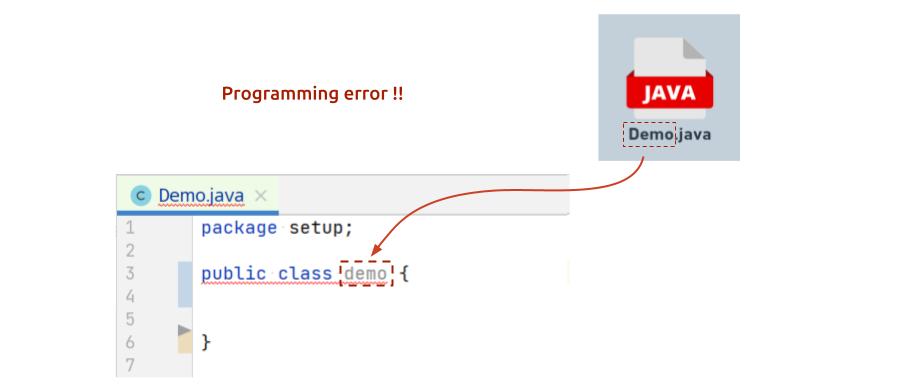 Again, it is important to remember that the Java file and class declaration names must be identical. Otherwise, it will also result in a programming error.