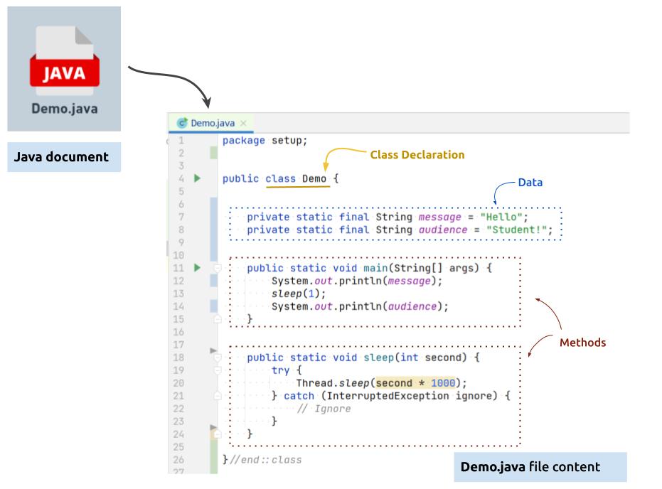Every Java application projects are just collection of Java files ( aka Class files ). Understanding the structure of Java file is crucial for understanding Java programming.