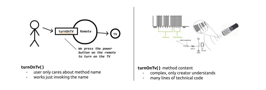 A method is a container for a group of useful executable code. As an analogy, the button on your TV remote controller is similar to a method. It groups and hides complicated engineering details as a mere button.