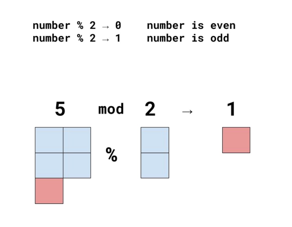 The modulus operator (% ) is especially useful to do simple things like figuring out if a given number is even or odd and more complex tasks like detecting a cycle.