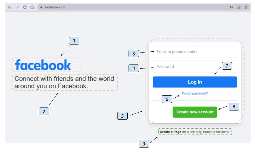 Everything you see on the website is known as a web element. This includes text, icons, images, videos, buttons, etc. For example, as you can see from the following screenshot, the Facebook sign-in page has over nine interactable elements and is visible to the user.