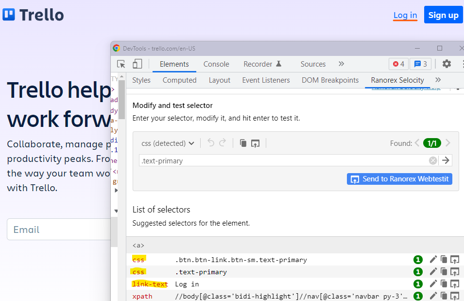 Finding an element location from the website involves finding its exact coordinate value with specialized element locating strategies. Usually, we will use an AI-powered tool called Ranorex Selocity to find these values.