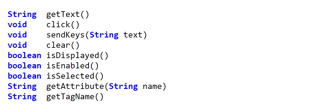 We will cover 9 essential WebElement methods as we covered in the lecture. For a complete list of methods, please refer to the Java documentation (link).