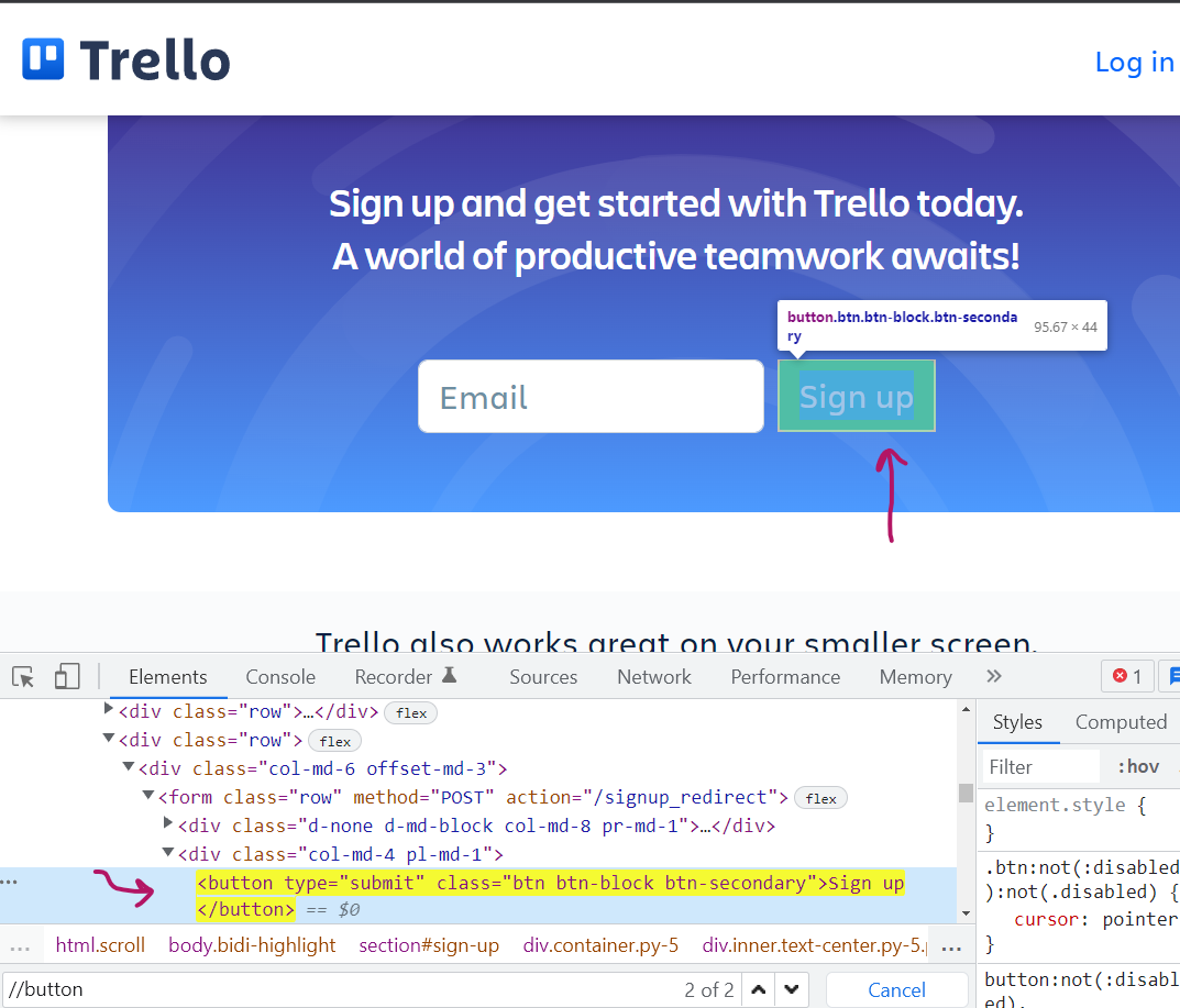 As you can see, the highlighted [Sign Up] button is rendered by the <button> tag.