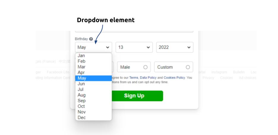 Dropdown is one of the most common elements present in web applications. By default, the driver does not have a method to interact with it. To address this, Selenium provides Selectclass to interact with the dropdown element.