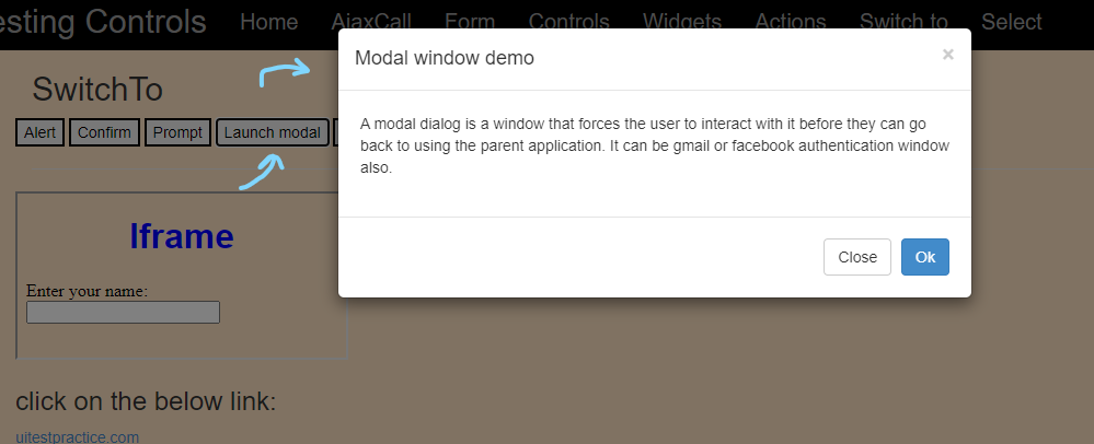 Switching to Alert will result in returning of an Alert object. Through this Alert object, we can interact with the displayed Alert box.