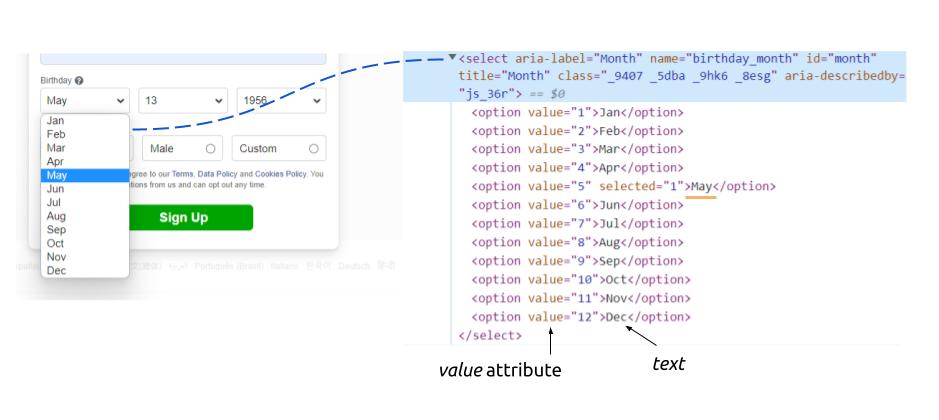 There is one more way to select an option, which is by using the value attribute. Here is what this dropdown element looks like behind the scene.
