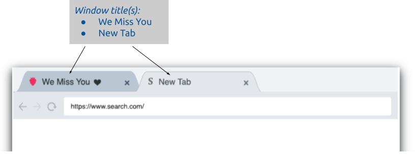 Using the title and the window handles, we can switch to any open window by utilizing the for-each loop. Here is the sample code for switching to the "New Tab" window from the above image: