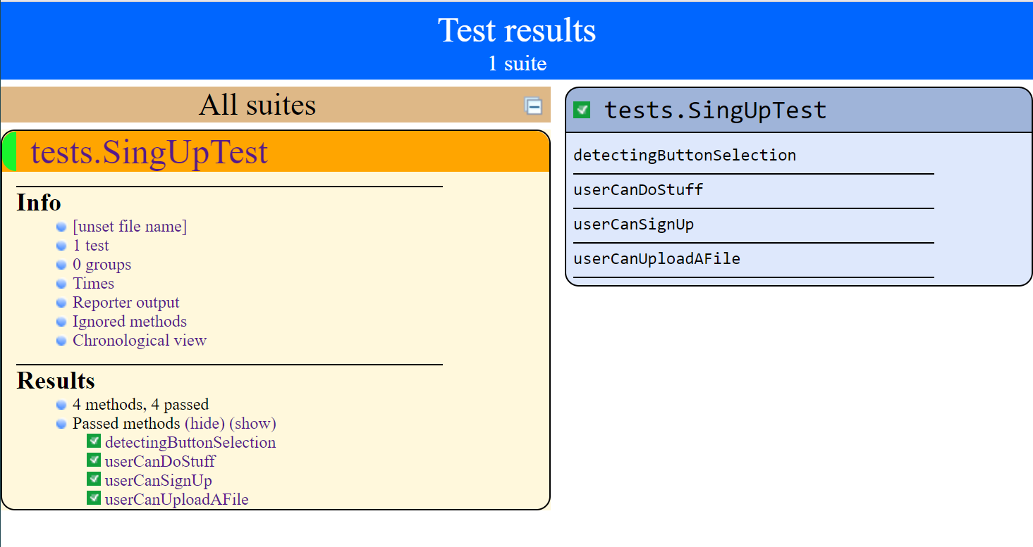 Here is an example of a custom-made report utilizing the implementation of the ITestListener interface.